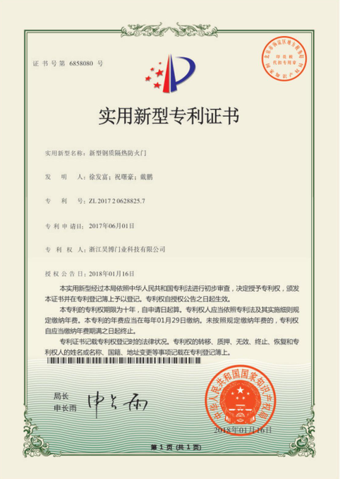 浙江昊博門業科技有限公司創建于2009年,公司位于享有“中國木門之都”、“消防器材之鄉”的浙江——江山。公司專業從事鋼質、木質、鋼木質防火門,裝甲進戶門,避難間防火門、耐火窗及防火卷簾門系列產品的研發、制造、銷售和安裝服務。旗下有全資子公司浙江昊博消防科技有限公司,專業從事木質防火門、避難間防火門的研發、生產。